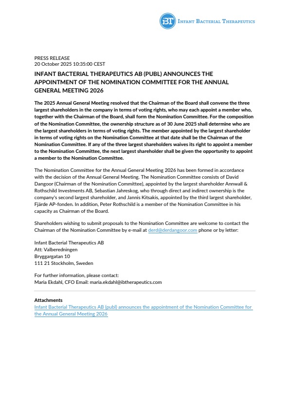 Maria Ekdahl, CFO Email: maria.ekdahl@ibtherapeutics.com